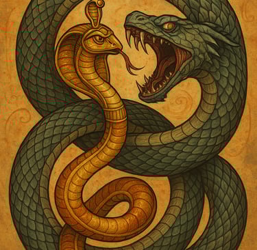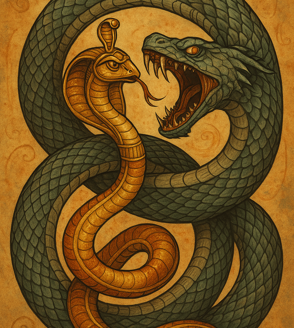 No myth is without its serpent. The Norse have Jörmungandr, vast enough to choke oceans. Egypt birthed Apophis, chaos incarnate, forever threatening Ra’s passage through the night. Cleopatra herself wore Uraeus at her brow, the rearing cobra of divine rule.